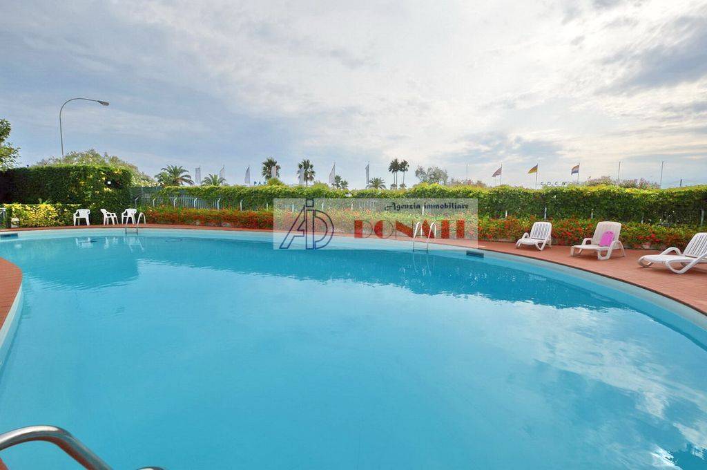 Appartamento in Vendita a Cinquale in posizione esclusiva fronte mare, all’interno di un elegante complesso residenziale con ampio giardino ben curato con piscina condominiale attrezzata. L'immobile è disposto su tre livelli ed è così composto: Piano terreno rialzato: Ingresso in spazioso salone da cui si accede ad ampia terrazza libera su tre lati attrezzata ideale per pranzi e cene all'aperto, cucinotto.