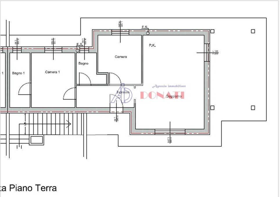 Si compone di soggiorno con angolo cottura, disimpegno, due camere da letto, due bagni (uno nella camera matrimoniale), ampia pompeiana per il pranzo ed il relax all'aperto, ampio giardino esclusivo e due posti auto interni con possibilità anche di un posto auto aggiuntivo su richiesta.