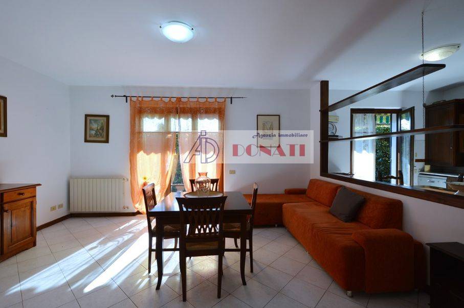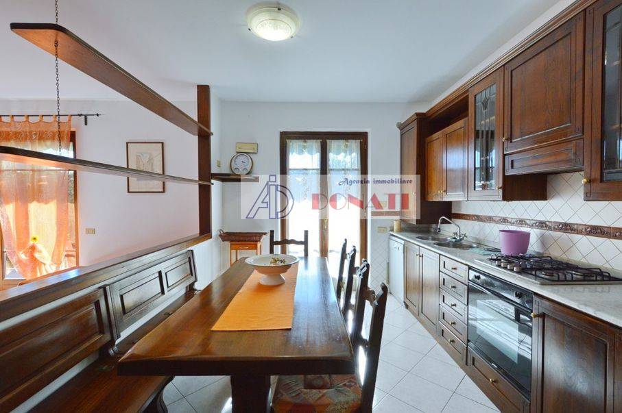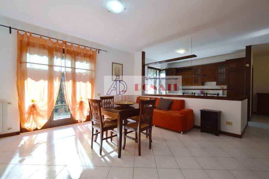 -Piano terra: vi è un ampio e luminoso soggiorno open – space con zona pranzo e cucina a vista, dai quali è possibile accedere al giardino privato angolare, ben piantumato con siepi perimetrali che creano una bella estetica e privacy con le Villette limitrofe, ideale da utilizzare come zona pranzo esterna e relax dove poter trascorrere momenti di convivialità all'aperto. Completa il piano terra un bagno con doccia.