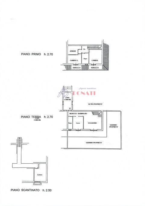 -Piano Primo: un'ampia e luminosa camera matrimoniale dotata di balcone privato, un bagno con vasca, una camera singola con balcone privato, una camera armadi utilizzabile all'occorrenza come eventuale terza camera o studio. La conformazione del piano primo offre la possibilità di essere ottimizzato in base alle proprie esigenze, esempio, eliminando solamente la parete che divide la camera singola con la camera armadi è possibile ricavarne una seconda ampia camera matrimoniale, oppure una seconda camera dotata di bagno en-suite.