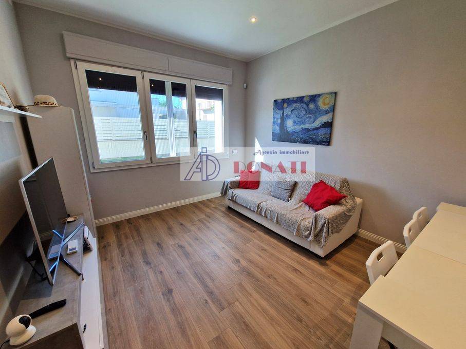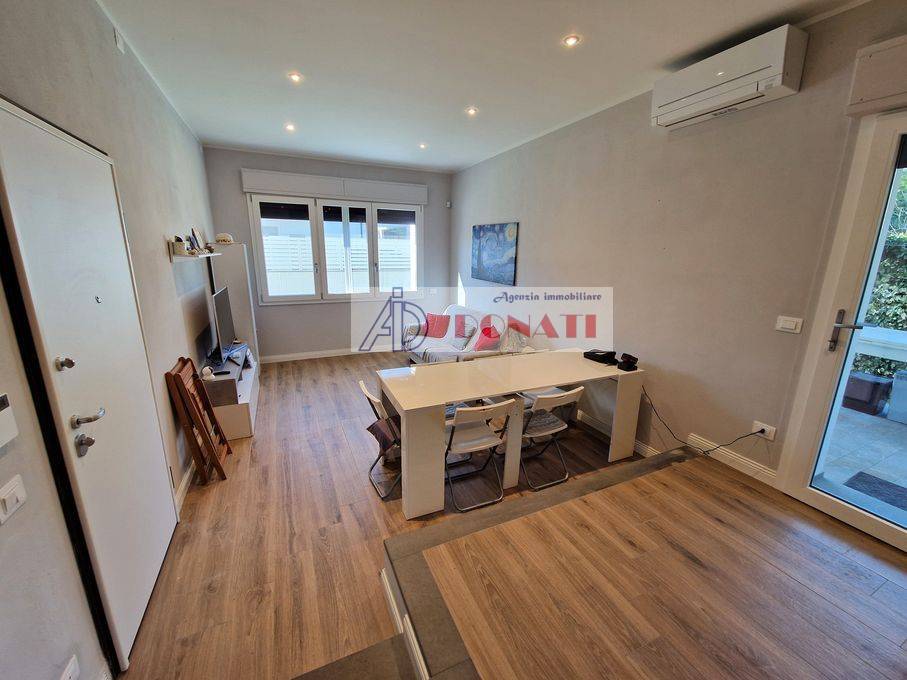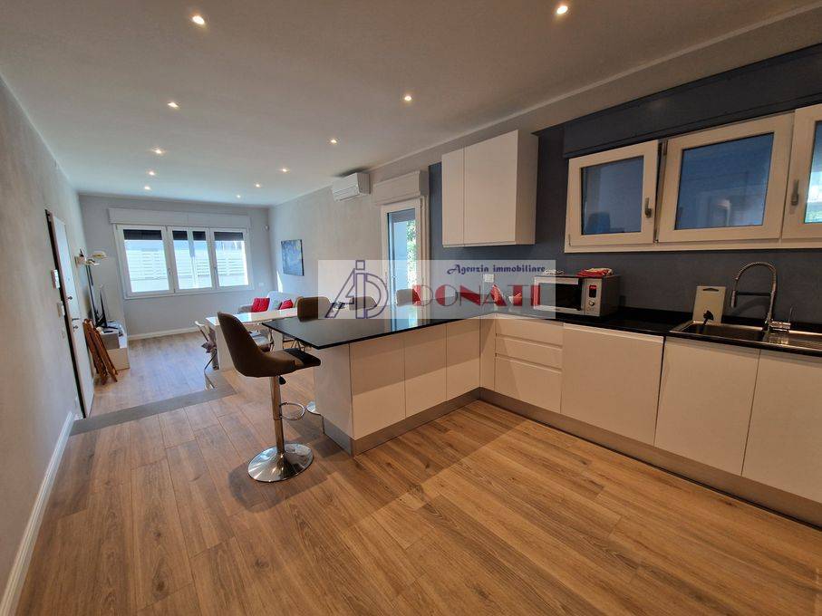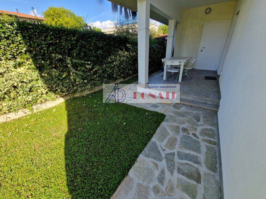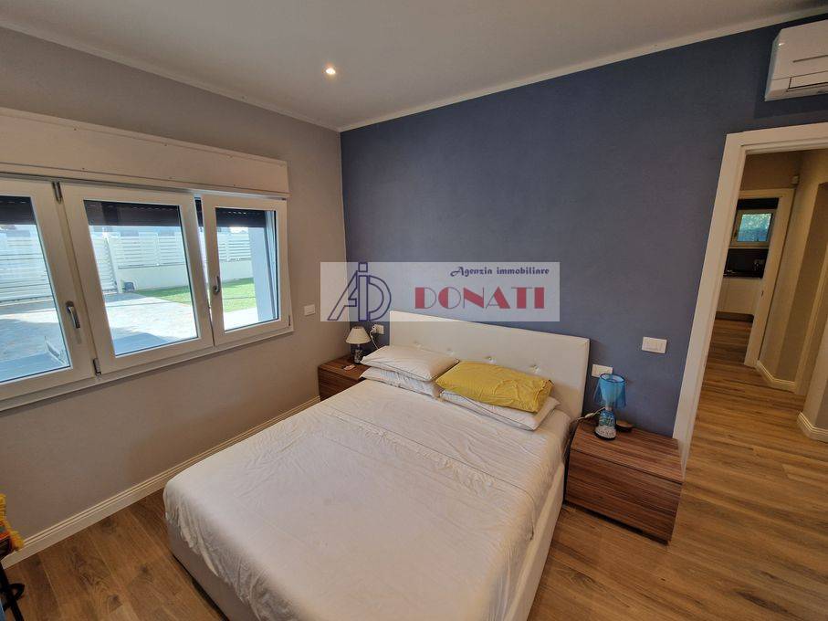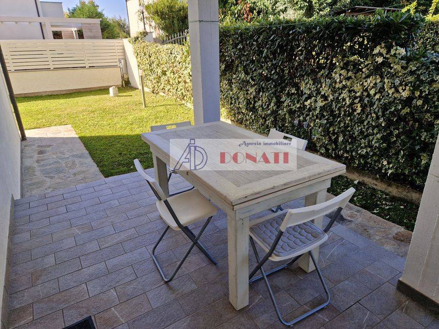 Appartamento completamente ristrutturato in piccolo condominio in Affitto a Cinquale a circa 1.9 km dal mare posto a piano terra con giardino privato. L'immobile è composto da: Soggiorno-pranzo con cucina a vista, bagno con doccia, disimpegno, camera con letto a castello, bagno con doccia, camera matrimoniale con l'aggiunta di un letto a castello, camera matrimoniale, ripostiglio esterno adibito a lavanderia. Veranda esterna coperta ideale per pranzi e cene all'aperto. Possibilità di posteggiare due auto.