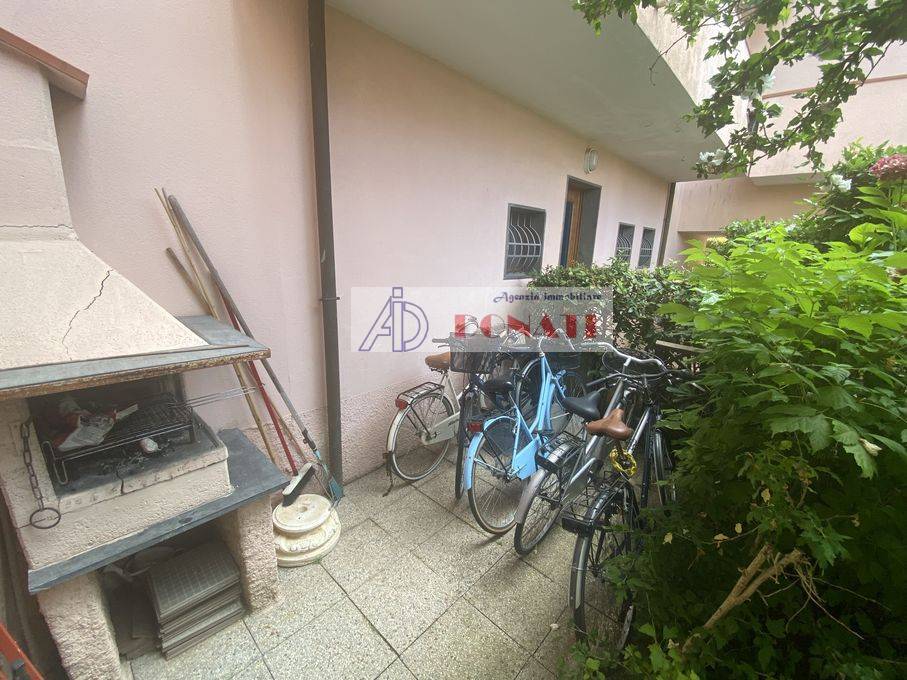 Il giardino, su due lati, misura circa 40 metri quadrati con posti auto in parcheggio condominiale.