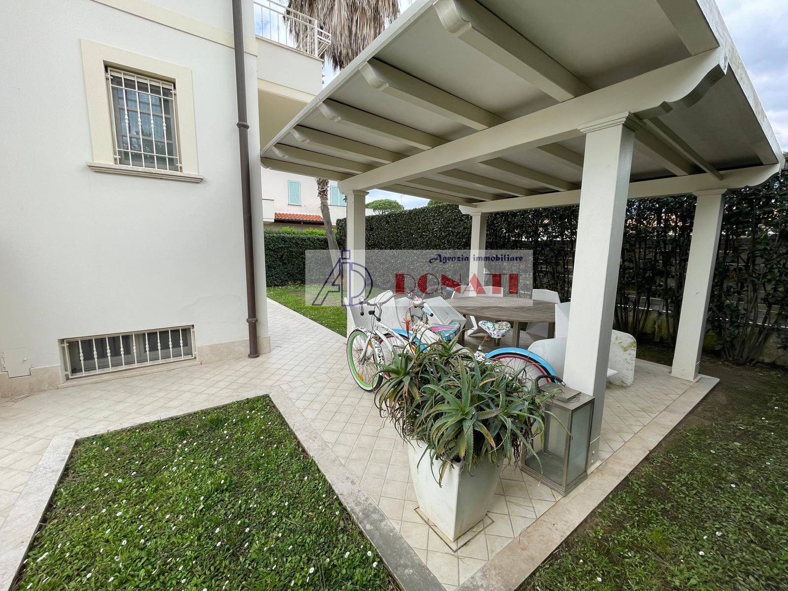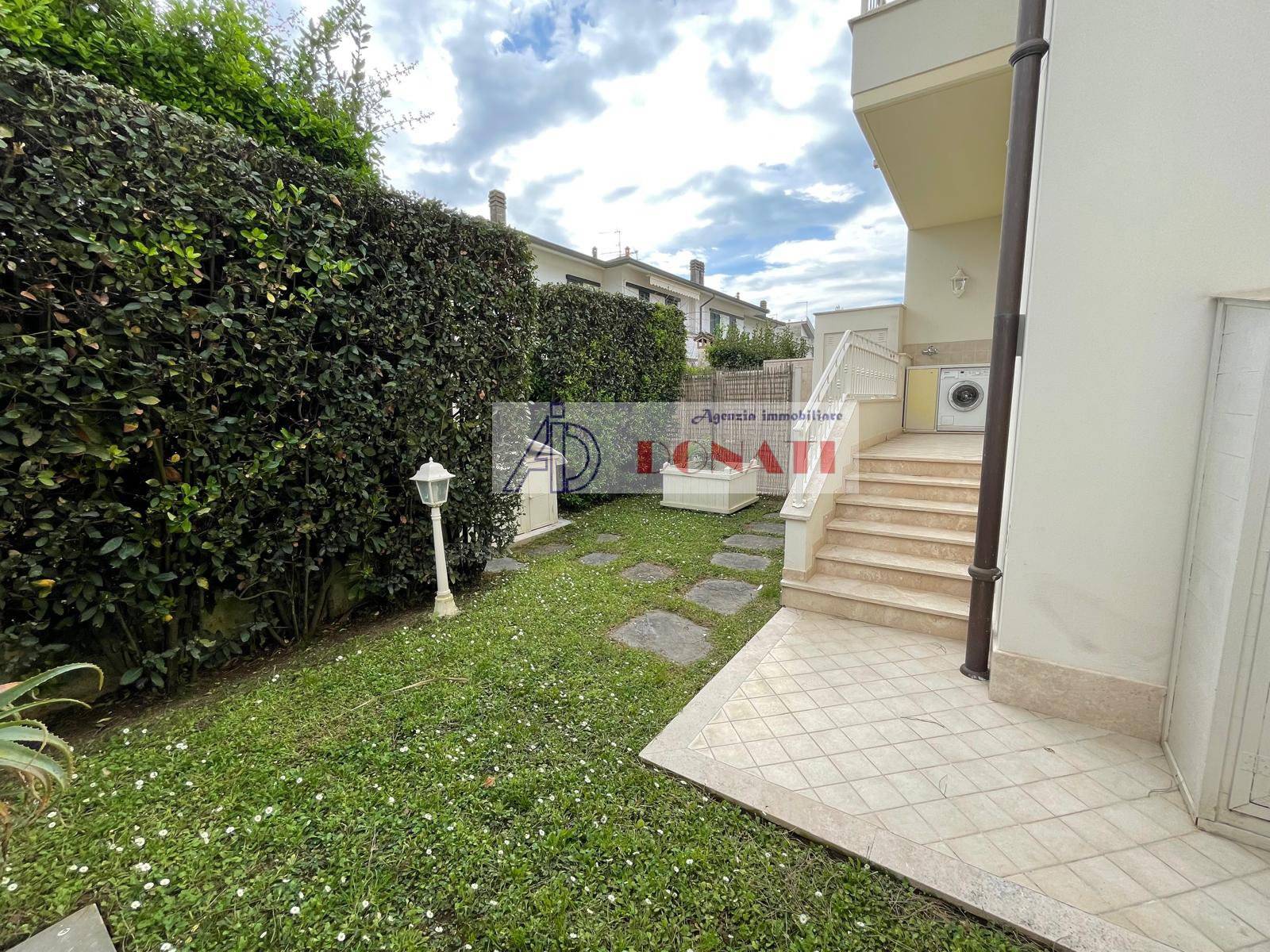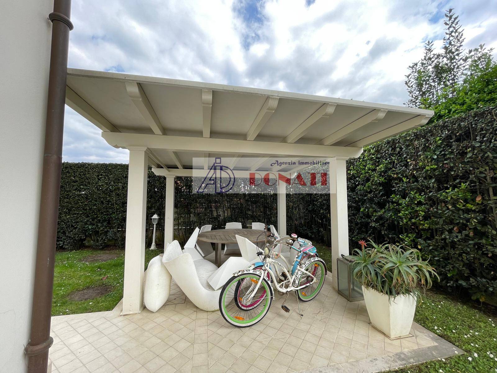 Corredata di giardino esclusivo su tre lati con gazebo per pranzare all'aperto, zona barbecue, doccia esterna e due posti auto di proprietà all'interno del parcheggio condominiale. L'immobile si compone di:soggiorno con angolo cottura, disimpegno e bagno con doccia a piano terra;