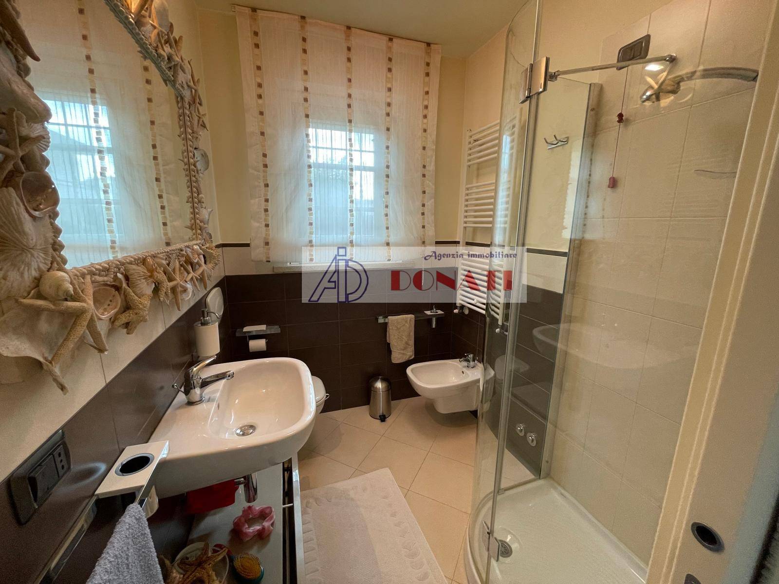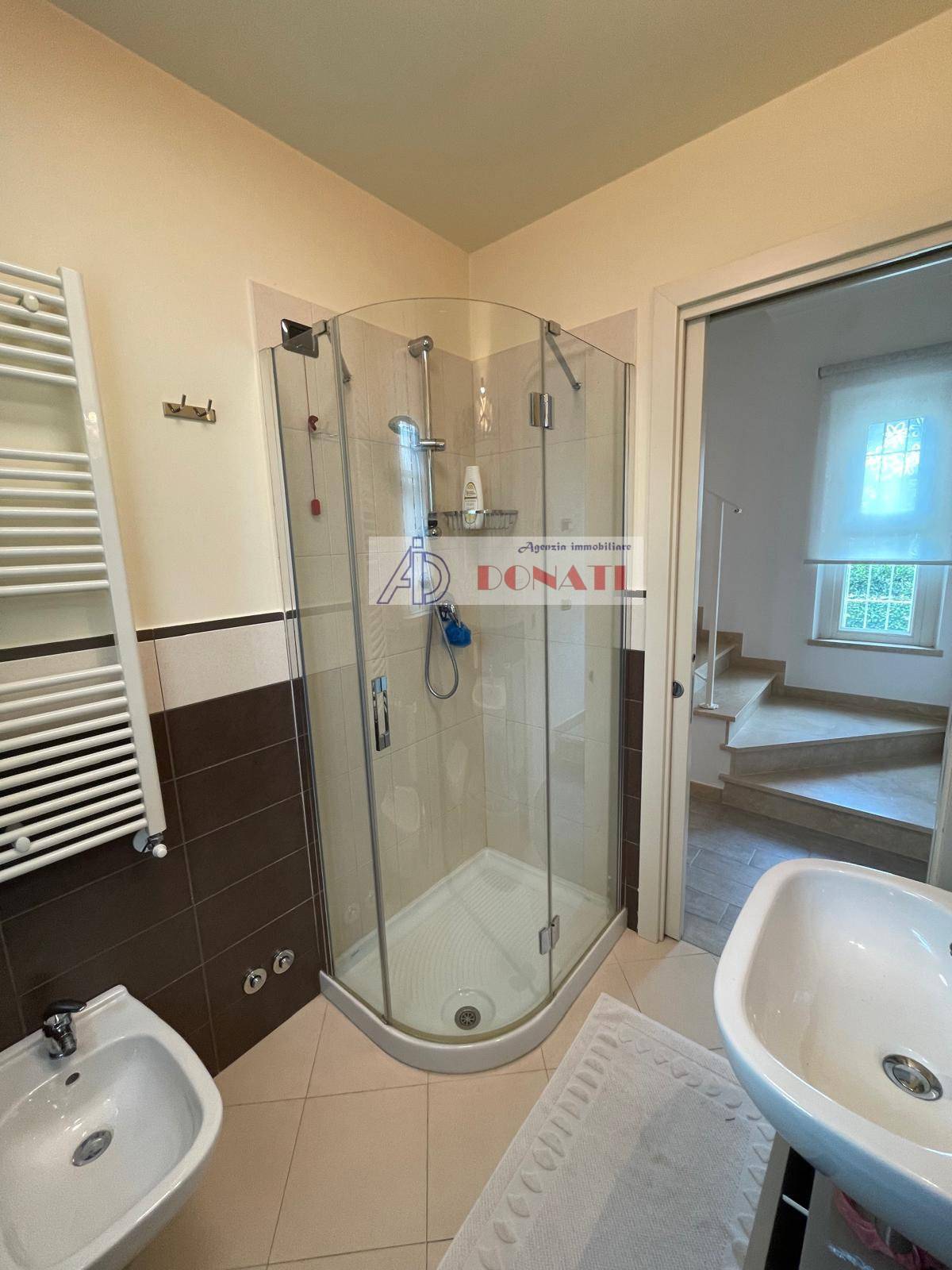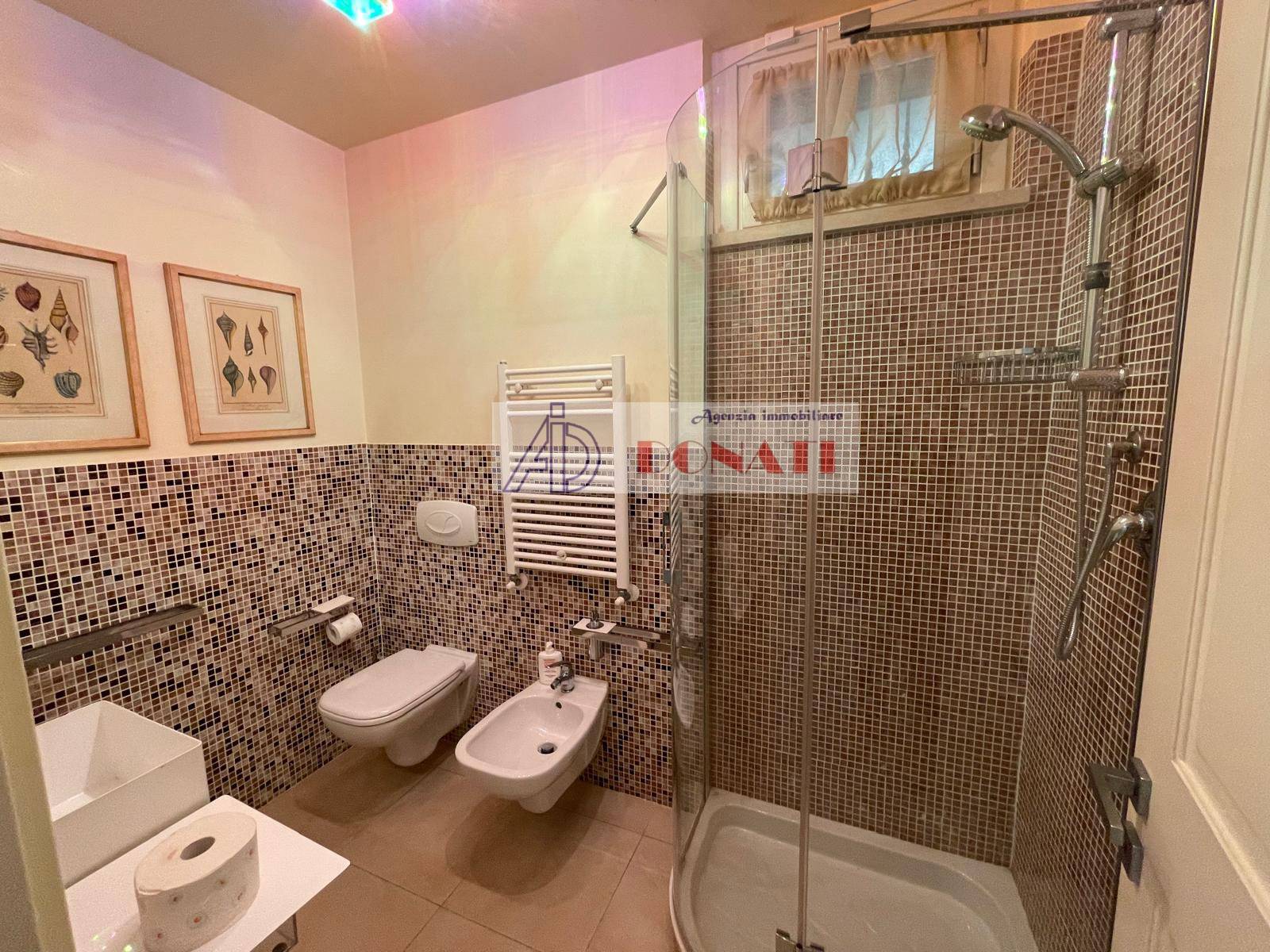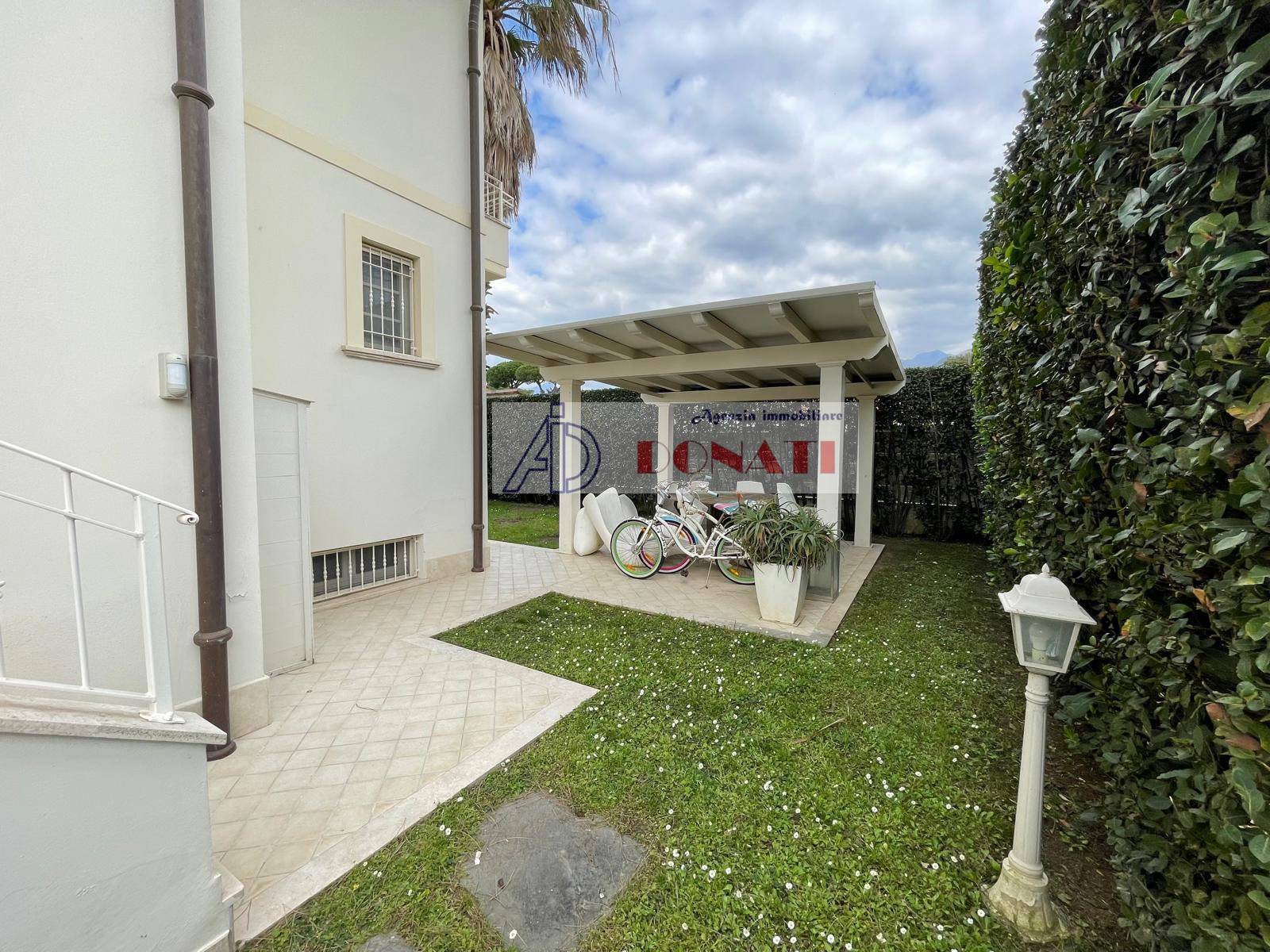 Corredata di giardino esclusivo su tre lati con gazebo per pranzare all'aperto, zona barbecue, doccia esterna e due posti auto di proprietà all'interno del parcheggio condominiale. L'immobile si compone di:soggiorno con angolo cottura, disimpegno e bagno con doccia a piano terra;