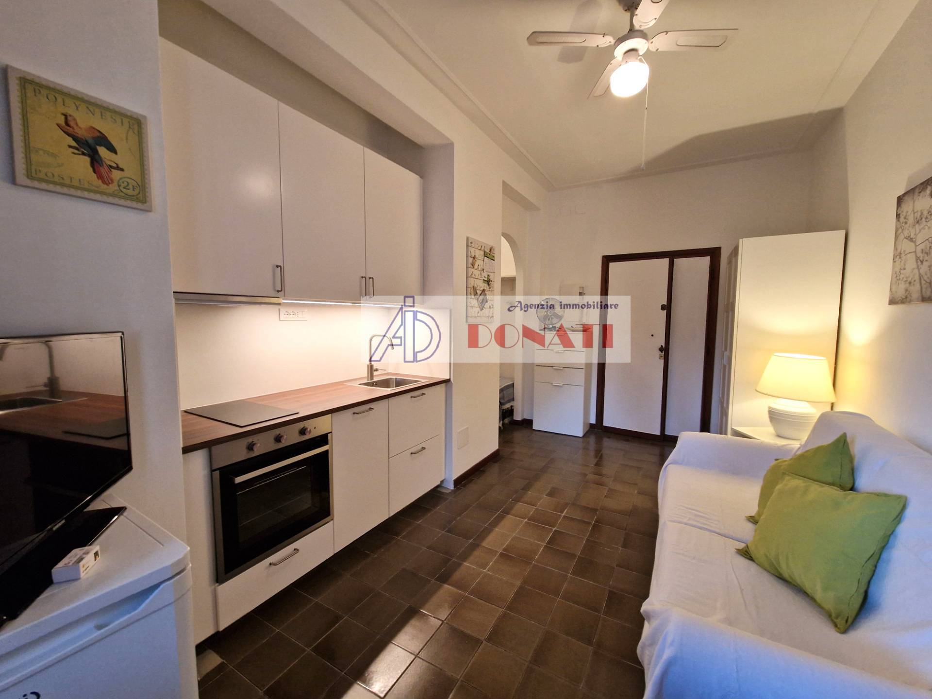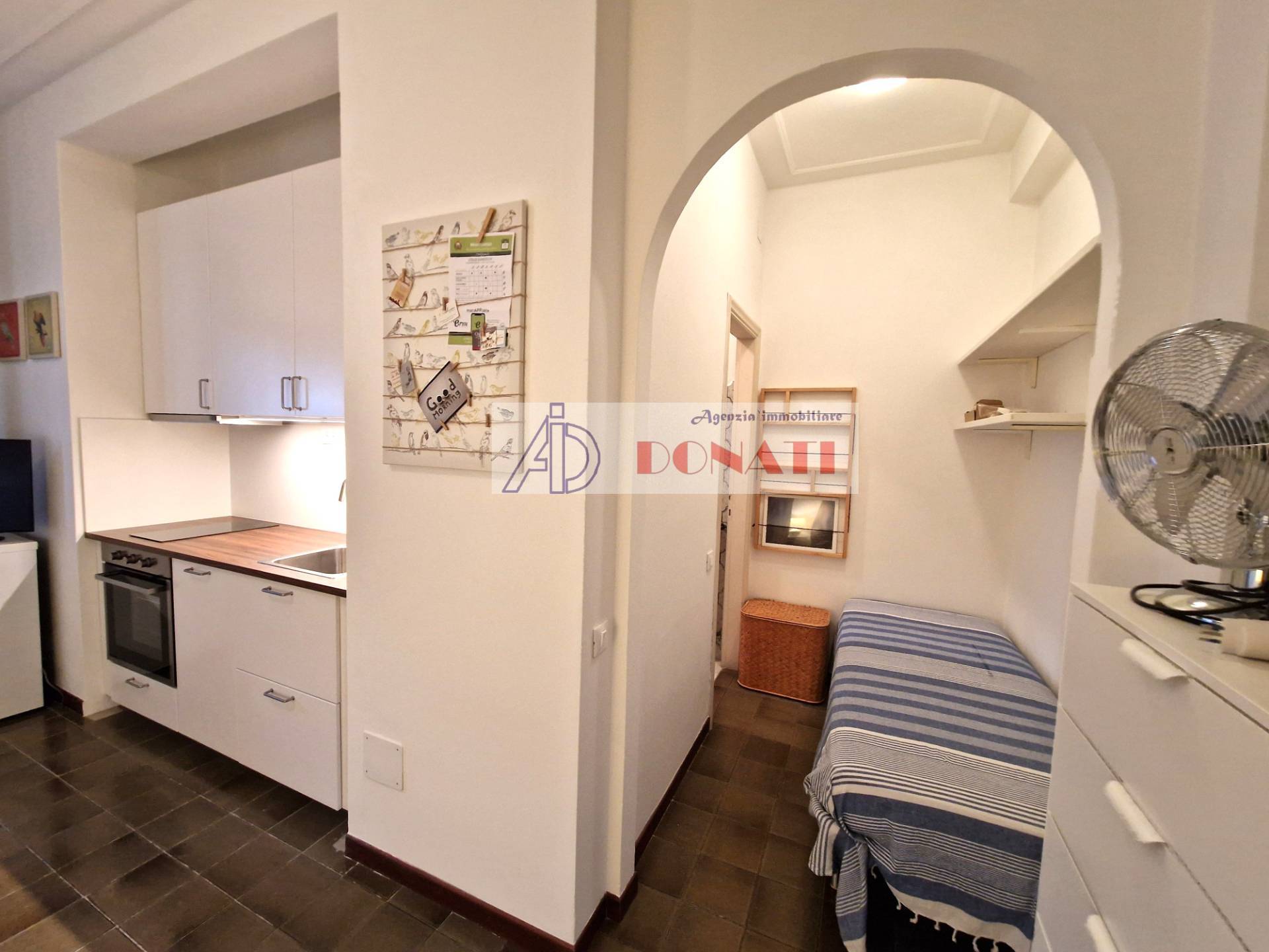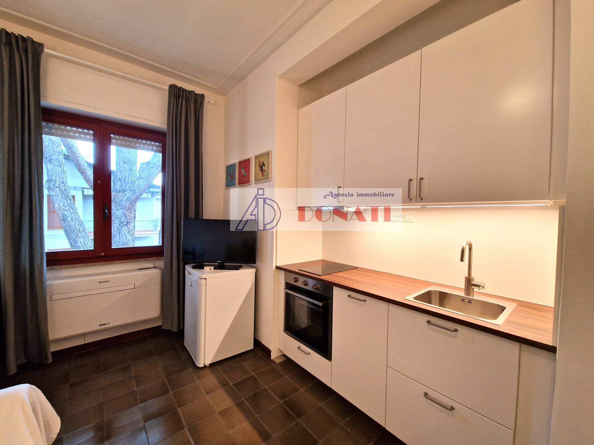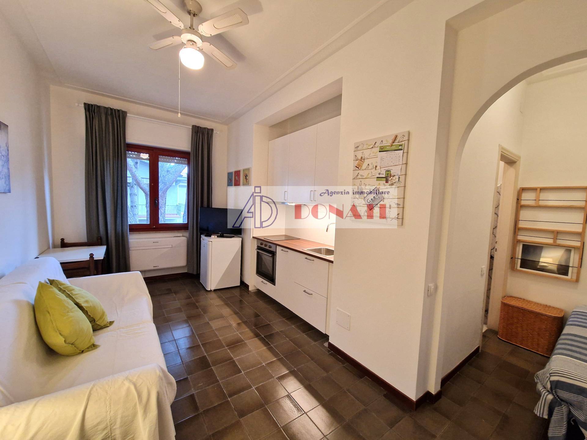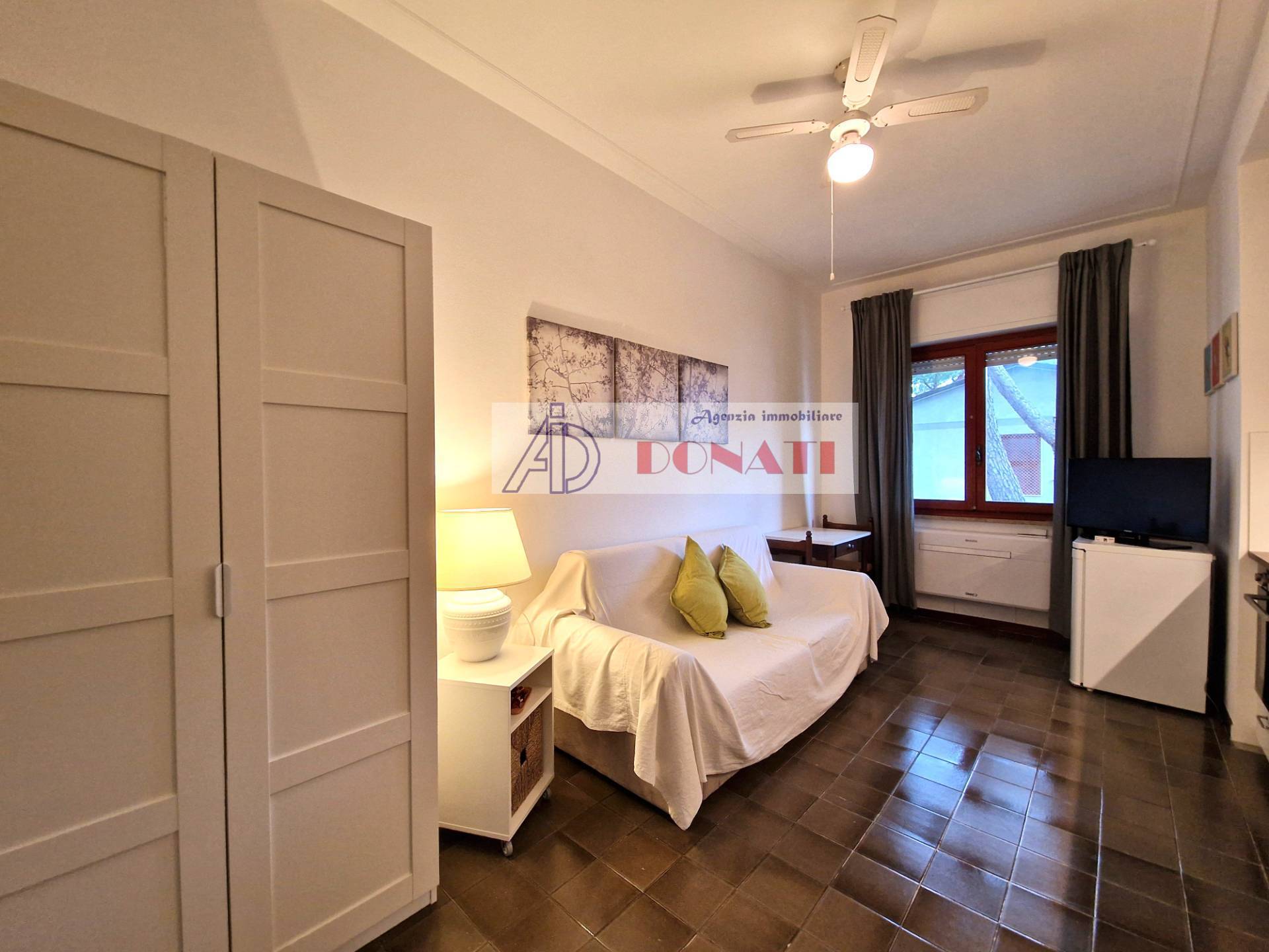Appartamento monolocale in Affitto a Cinquale, a circa 600 metri dal mare, posto al piano secondo ed ultimo in condominio. L'immobile è composto da unico vano con angolo cottura e divano letto matrimoniale, bagno con vasca. Ampio giardino condominiale, posto auto assegnato e posto bici.