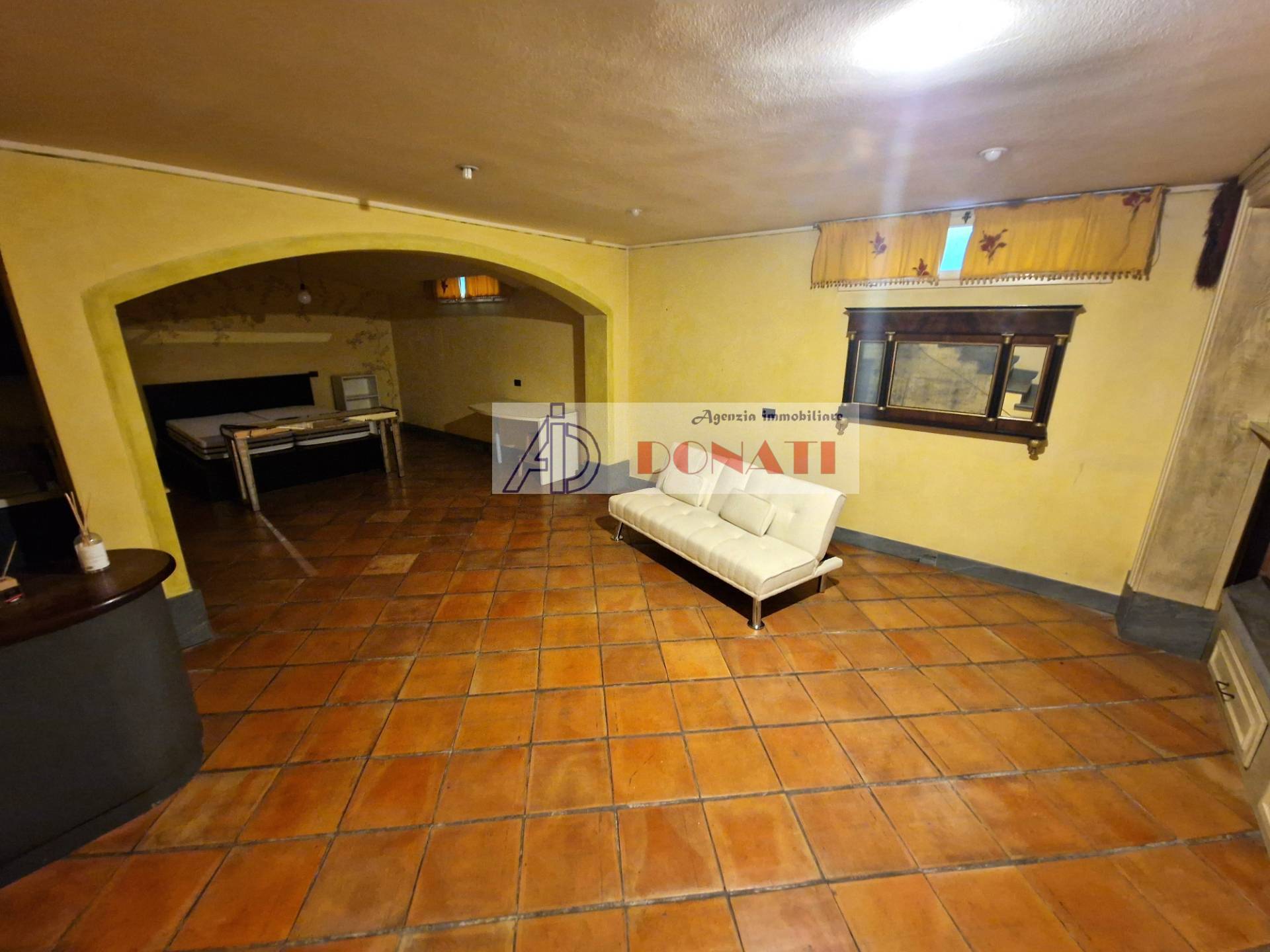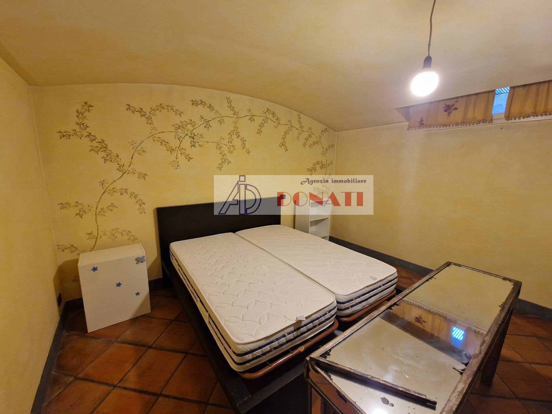 Ampia stanza (con letto matrimoniale) con un bagno con doccia al piano seminterrato.